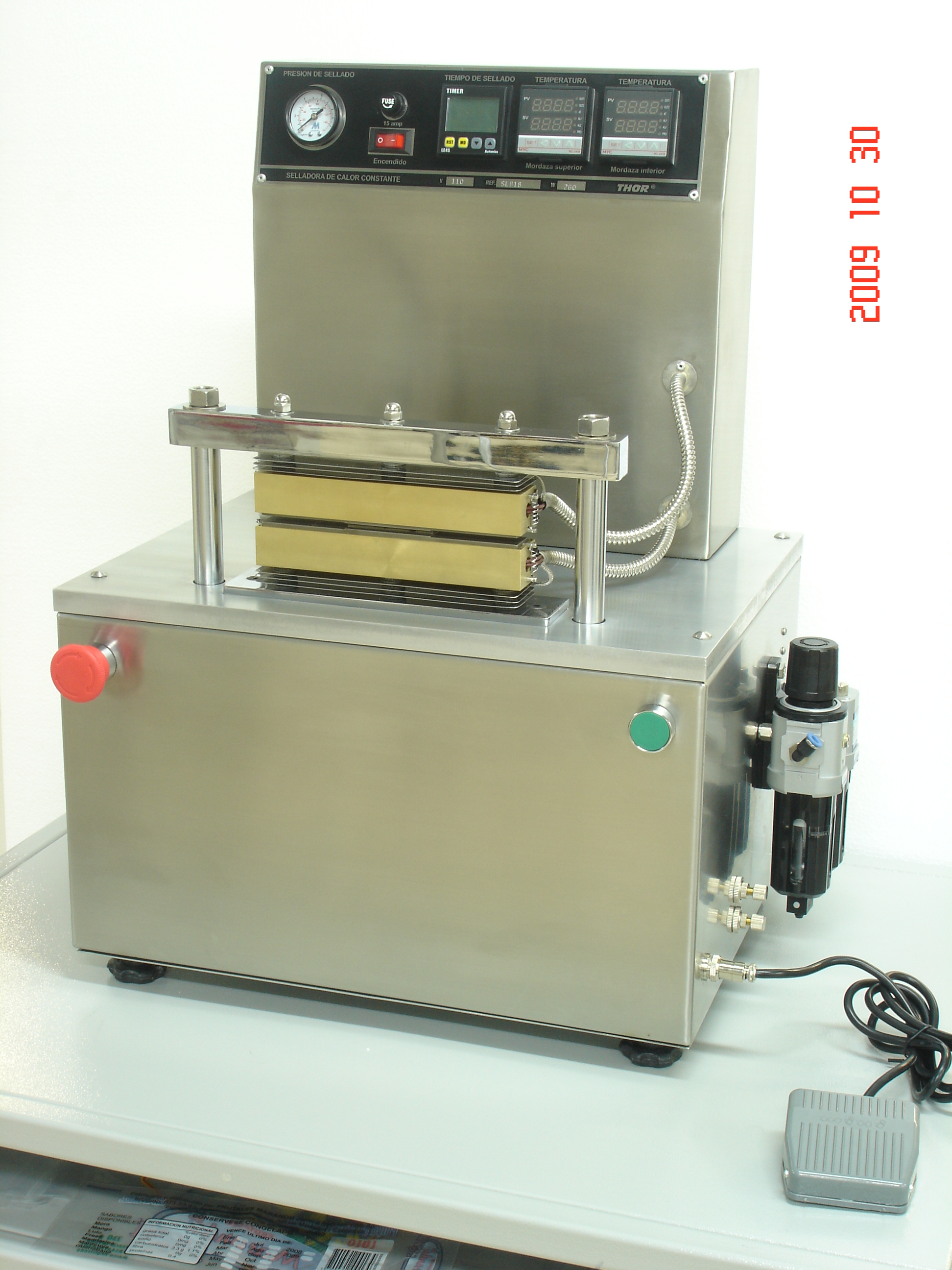 Selladoras de calor constante tipo mordaza para empacar una gran variedad de productos en bolsas plásticas (polipropileno, laminados, aluminio, etc). Sellado perfecto. Sello plano o ranurado. Técnicamente diseñadas, efectivas, durables, que le darán seguridad y confianza en el proceso para que sus productos queden óptimamente empacados y tengan una excelente presentación de acuerdo a sus necesidades. De aplicación en diversos sectores tales como: alimentos, frigoríficos, panaderías, y comercio en general. Algunos productos en los que se utiliza este sistema son: papitas, dulces, galletas, helados, café, etc.